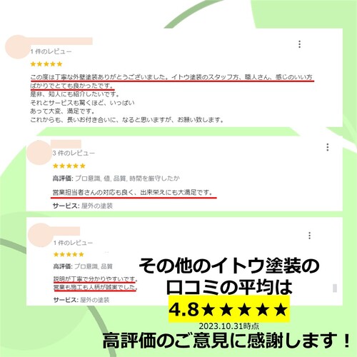 イトウ塗装への口コミを御覧いただき、お客様へのリアルなお声や
