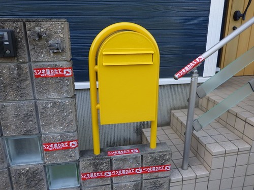 黄色の郵便受けが濃い目の紺色の外壁をより一層引き立て、ワンポイントの塗装の大切さを改めて感じる事ができた、非常にお洒落な仕上がりとなりました。