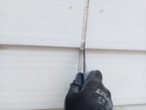 高圧洗浄後、古いコーキング材を撤去していきました。