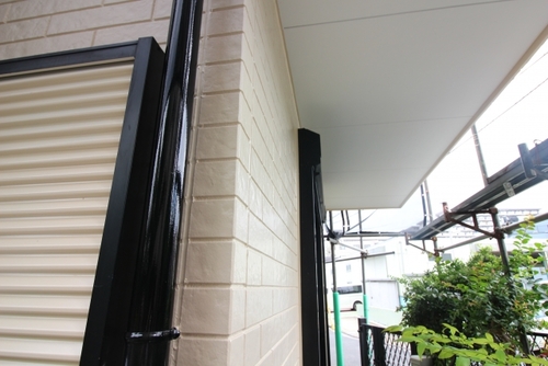 お尋ねします。 現在、自宅の外壁塗装を依頼しております。モルタル外壁で、塗料はダイヤスーパーセランフレックスを使っています。 三面は中塗りまで完了、残る一面は下塗りを終えています。 しか