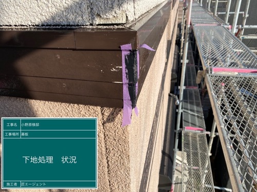 4年前の外壁塗装時に塗った幕板の不良施工です。