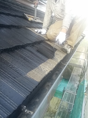 中塗り材は屋根と同様でセラミックシリコンを使用。