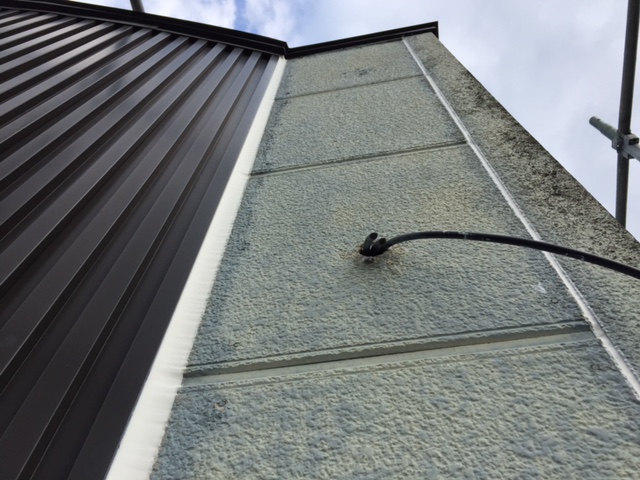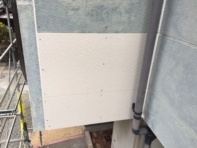 今回の建物は、外壁(サイディング)の防水効果低下と、目地コーキングの劣化が原因で、そこに雨水が侵入して外壁が腐食しているという状態にありました。そのため、大切な下地処理となる、新規ボード張替えと目地コーキングの打替えを実施致しました。