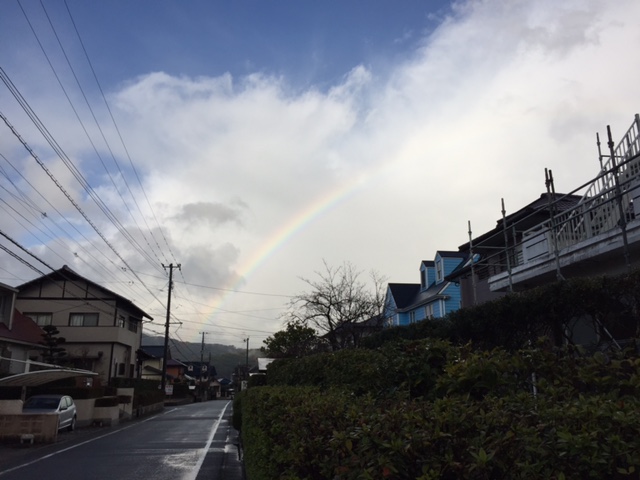 ですが、現場付近で久しぶりに虹を見ることができました(*゚▽゚*)虹なんて何年ぶりだろう?などと思いながら、記念にパシャリ★