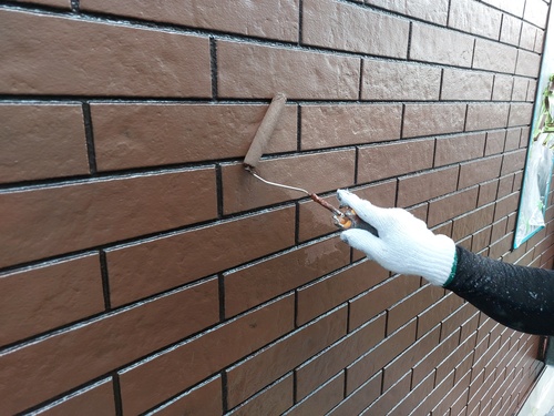 本日はタイル柄表面の刷毛、上塗りの作業を行いました。