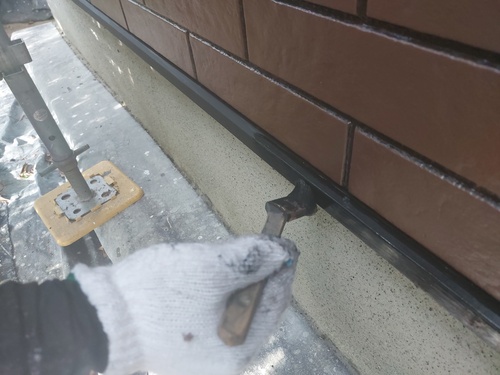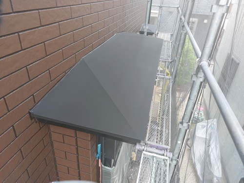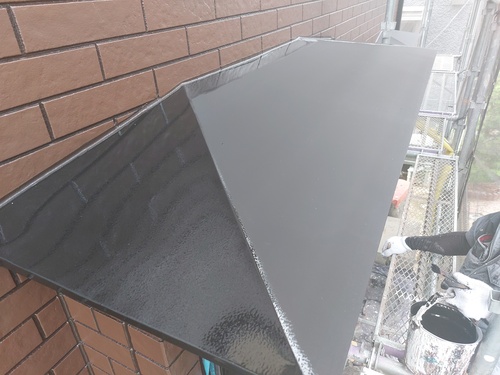 本日は横樋の上塗り一回目、二回目 破風の上塗り シャッターボックス、庇、水切りの錆止め、 上塗り一回目の作業を行いました。
