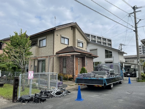 久留米市白山町のO様邸の足場着工しました!^ ^