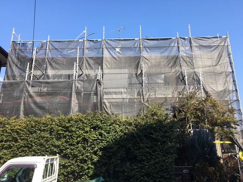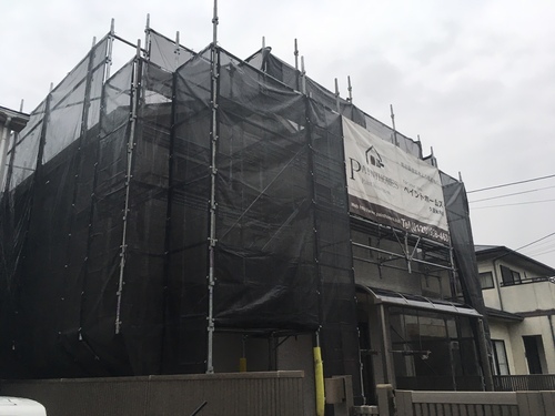本日より久留米市荒木町にお住まいのU様邸で屋根・外壁塗装工事が始まりました✨