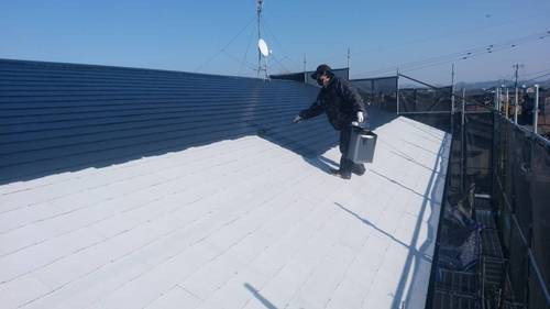 錆止め処理、屋根外壁塗装の下塗り(1回目)まで完了いたしました!