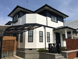 1Fオフホワイト×2Fダークグレーで軽やかさと重厚感漂う素敵な外観に変わりました✨