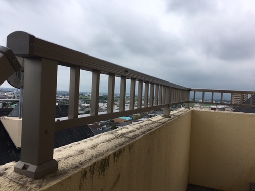 久留米中央店では先日、佐賀市10階建マンションにて外部階段フェンス取付け工事が完成いたしました✨こちらの物件、オーナー様からのご依頼で、ペイントホームズで2度目の工事となります![]()