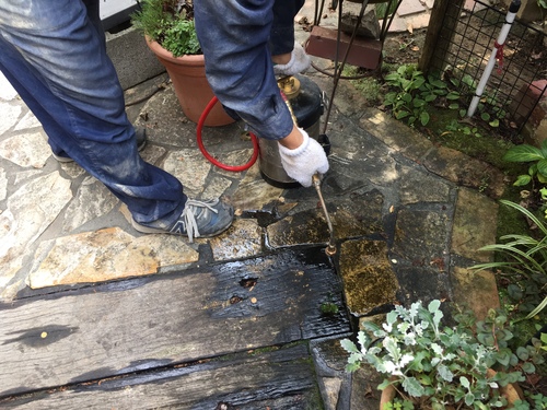 今回はシロアリの繁殖を防ぐ為に、床下と外構周辺に薬品の散布処理を行いました!