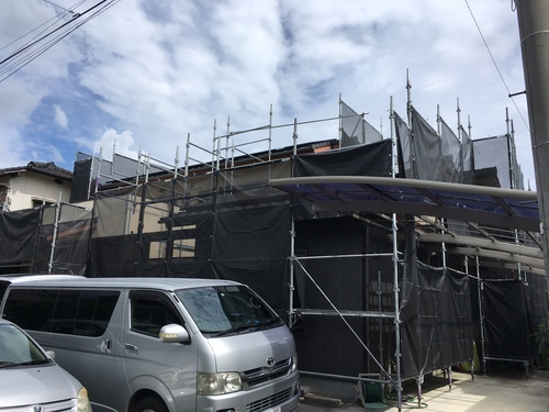 久留米中央店では先日より三井郡大刀洗町にお住まいのI様邸で屋根・外壁塗装工事がスタートいたしました★