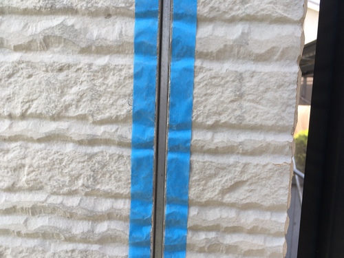 本日はコーキングの打替え作業の中の剥ぎ取り(撤去)を実施いたしました。