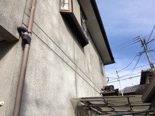 塗装前は外壁材のリシンが剥がれ落ちている状態だったのですが、、、、