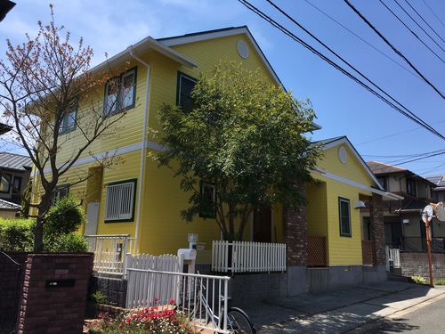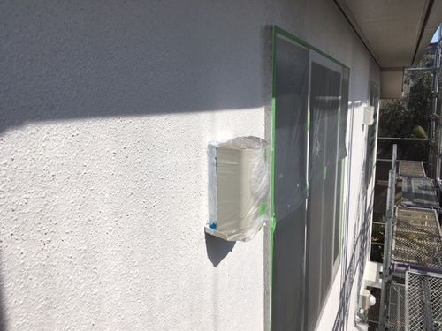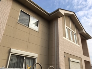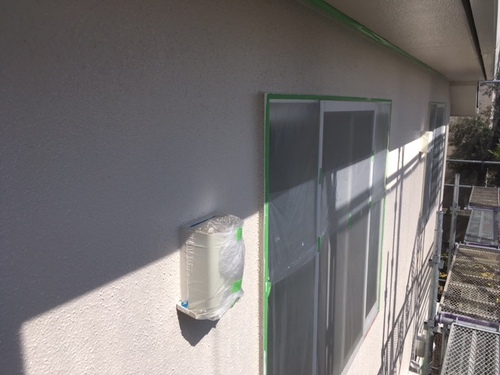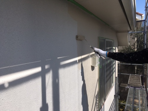 明日外壁塗装の上塗り(3回目)を行うのですが、もう少しクリームがかった色に変わっていきます。