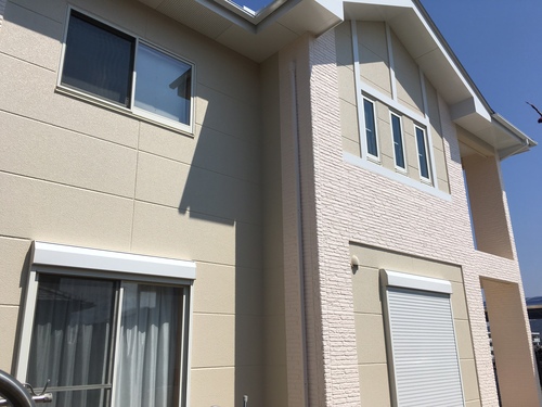 1Fのタイル調部分はクリアコート、2Fサイディングは単色塗り仕上げとなりました![]()