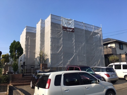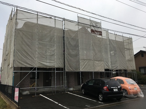 鳥栖市にてアパートの屋根・外壁塗装工事がスタート致しました♪