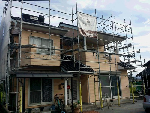 ちなみに現在塗装工事を竣工中のお客様、足場はキッチリ頑丈に組んでありますので、倒れる心配はございませんのでご安心を