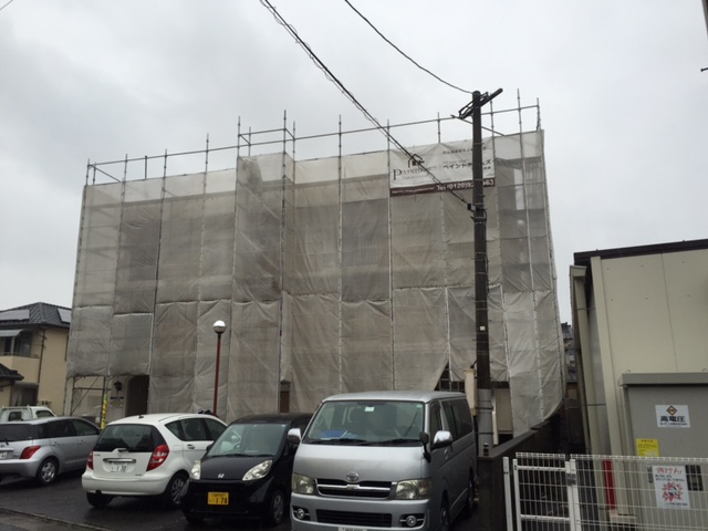 久留米市でアパート塗装がスタート致しました工事内容は外壁塗装と屋上防水になります。