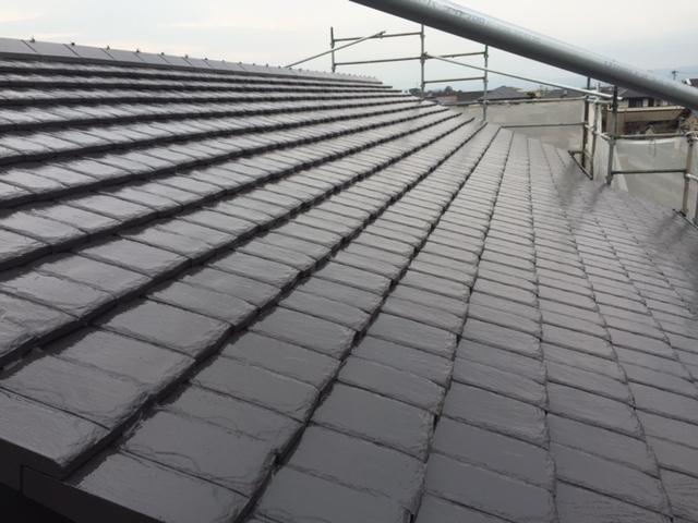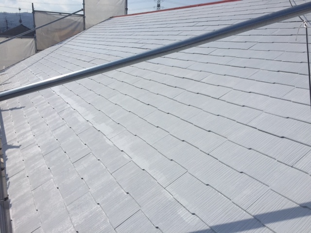 曇りの日に撮影しましたので、分かりにくいと思いますが屋根なんかは、艶が出て新品同様の仕上がりになっております。また今後の防水効果も大変期待が持てると思います✩