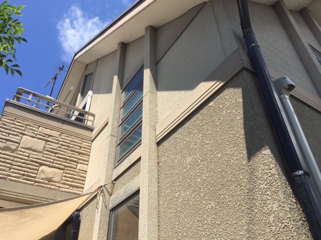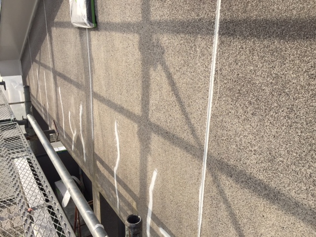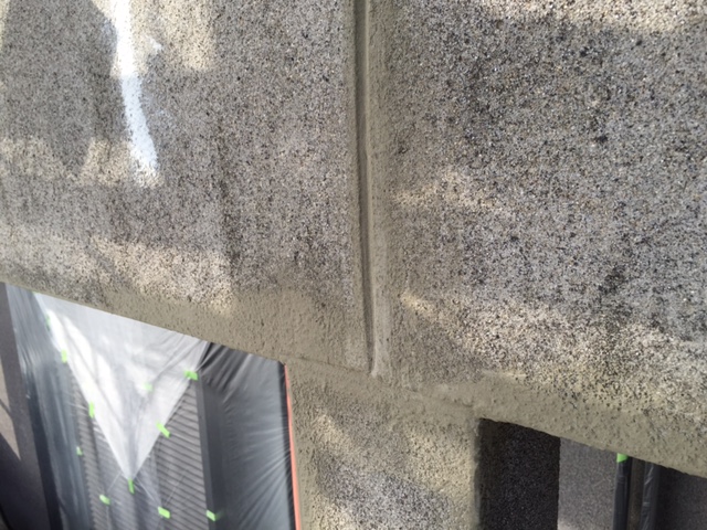 こちらの建物はモルタル下地のになりまして、紫外線、雨水などの影響によりクラック(ひび割れ)が多々発生にておりました。そのため塗装の大切な過程になる「下地処理」を念入に施工させて頂いております。