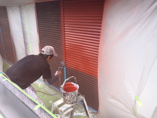 こちらの現場はあと数日で完工を迎える予定です♪今日は幕板の仕上げ塗装と雨戸の錆止め塗装を行いました。