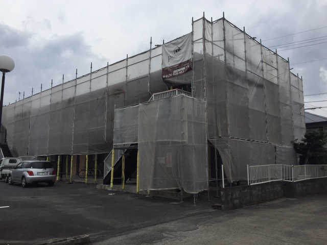 こちらは8世帯のアパートになりますので、なかなかボリュームがありますね!!外壁色が白と濃い茶色のツートンカラーでのご提案になりますので、大変オシャレに生まれ変わる予定ですヽ(´▽`)/