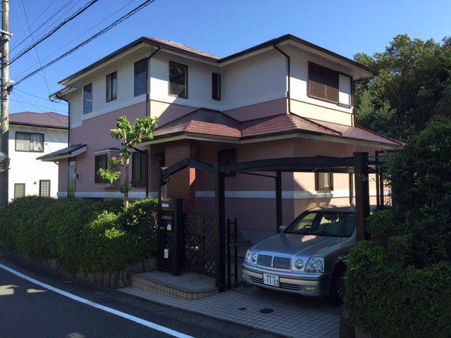 今回の外壁色はお客様が既存色を大変気に入っておられましたので、今回も近似色でご提案させて頂きました。ただ、屋根色は外壁の色に合わせて、グレー色からワインレッド色にイメージチェンジ致しました✩塗料のADIVA独特の艶消し具合で可愛らしく、とても品のある仕上がりになりましたヽ(´▽`)/お客様は工事内容、仕上がりともに大変喜んで頂くことが出来ました♪「遮断熱塗料ADIVA」の今後の効果に期待したいです✩
