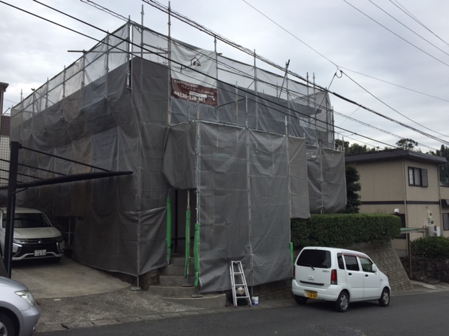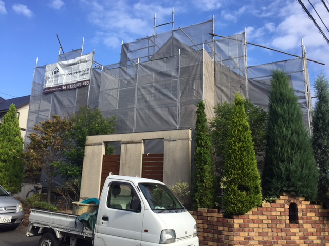 こちらの現場は、外壁色がホワイトと明るいアイボリーの2トーンカラー、屋根色がモスグリーンと明るく、品のあるお家に生まれ変わる予定です✩お客様も色の変わり映え、仕上がりを大変楽しみにしておられますので、ベストな工事でお届け致します♪