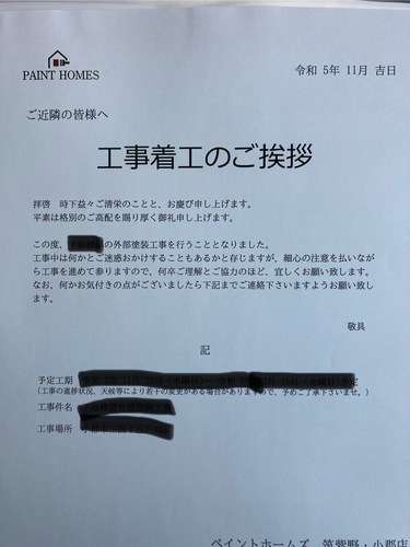 足場組み立て・解体・洗浄の再など近隣の方へはご不便をおかけする事もありますので、一軒一軒ご挨拶をさせて頂いておりますd( ̄  ̄)