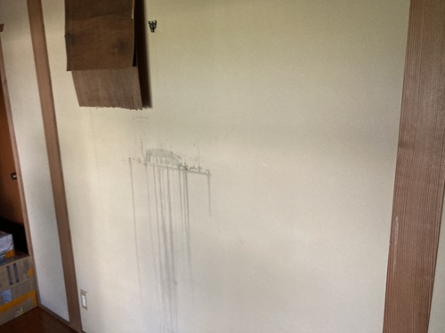 内部の砂壁が雨漏りにより汚れ・シミが目立っている状況です💦