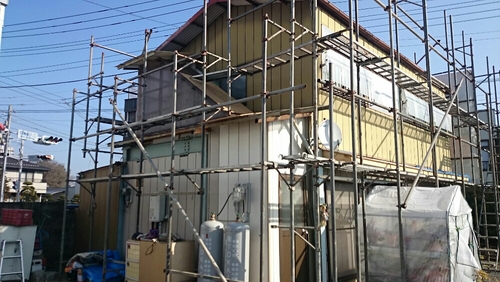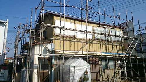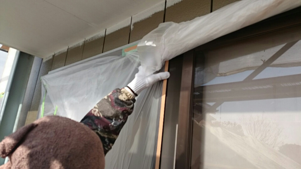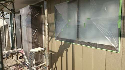 小美玉市O様邸にて養生、外壁・下塗りです