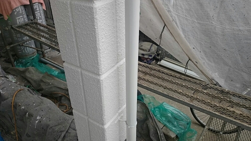 外壁外壁 施工中雨樋 一回目雨樋 施工後