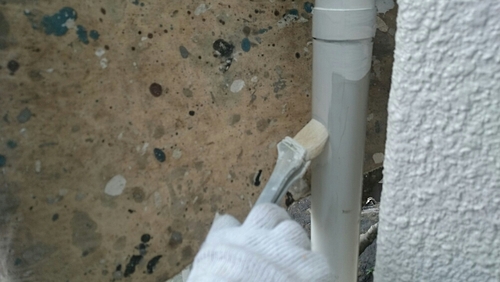 つくば市S様邸にて、雨樋・外壁下塗りです