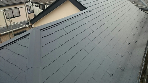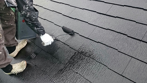 屋根 上塗り施工後シャッターボックス 施工中施工後