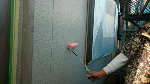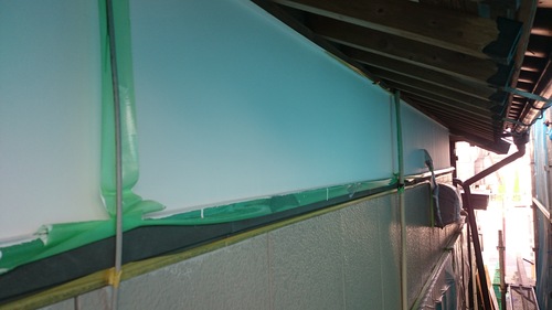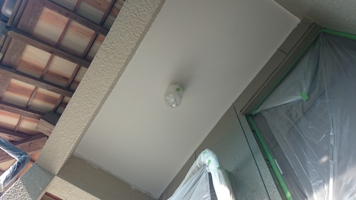 神栖市A様邸にて軒天1・2回目壁シーラー