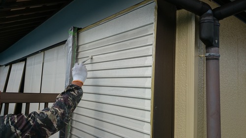 神栖市A様邸にて雨戸・戸袋、1回目です。