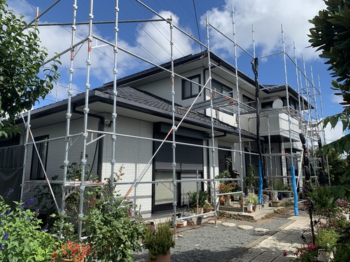 つくば市で一軒、塗装が終わり足場解体が完了しました。