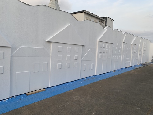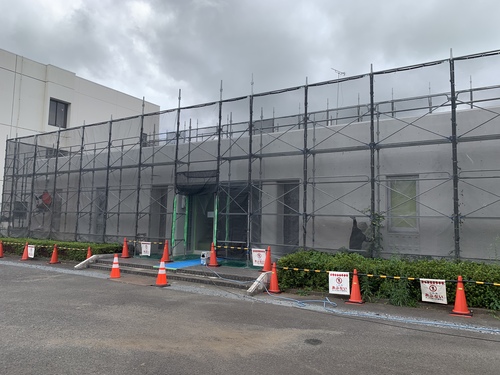 そして木曜日からスタートした県の施設も養生作業か終わり、下塗りが始まりました。