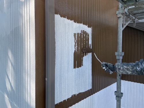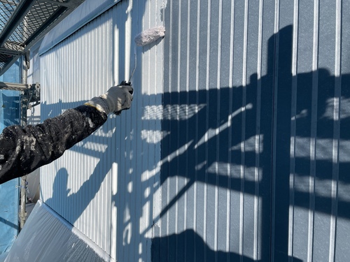 外壁上塗り1回目作業になります。