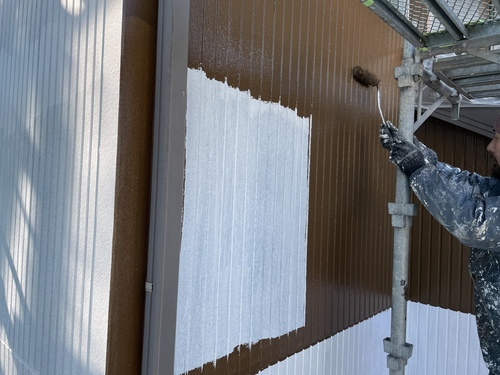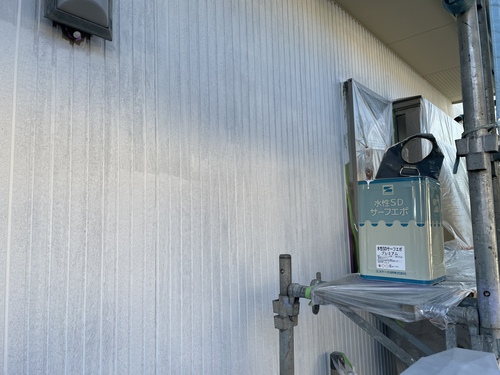 外壁下塗り作業になります。