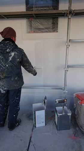 気温が低いので充分に乾かしてから塗装工事に移りたいと思います。
