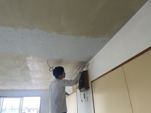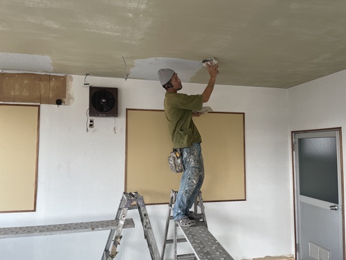 天井は全面パテ処理後、模様吹きをして水性の艶消しの紺色で仕上げました。