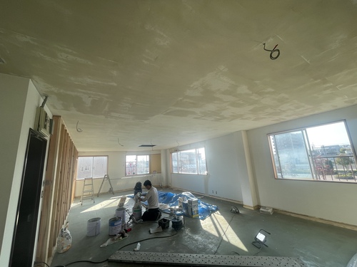 地震によるクラック等もありましたが、今回は内部のみの塗装作業となりました。
