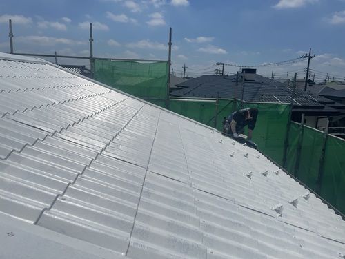 屋根塗装は、日本特殊塗料のパラサーモシリコンで遮熱塗料になります。