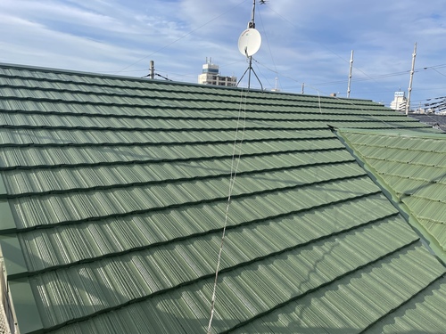 屋根は水谷ペイントの水系ナノシリコンで仕上げました。