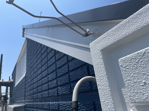 付帯部の白と外壁の紺色が非常に相性抜群です。