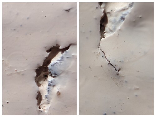 基礎部に雨だれ(外壁と水切り部から雨漏れ)で茶色に変色しております。...