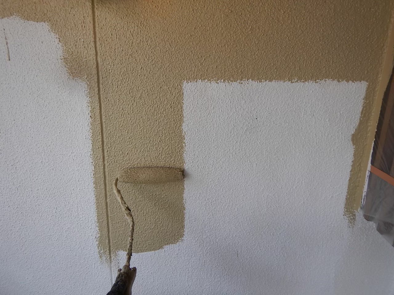 中塗/上塗は、着色を目的としているので着色顔料が入っていますが、下塗の多くは厚みなどを確保する目的で体質顔料が入っています。よって、下塗材はローラーが重なった部分が色が濃くなり、それ以外の箇所は薄くなるのが一般的です。既定の塗付量が付いているか管理するには、使用缶数などの使用量を確認するのが良いと思います。